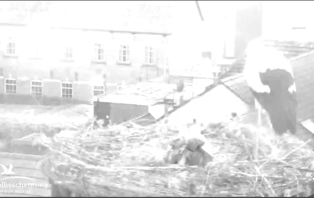 Vannacht is er een hevige onweersbui over Gennep getrokken. De clip laat zien hoe de ooievaars dit heel slechte weer trotseren.