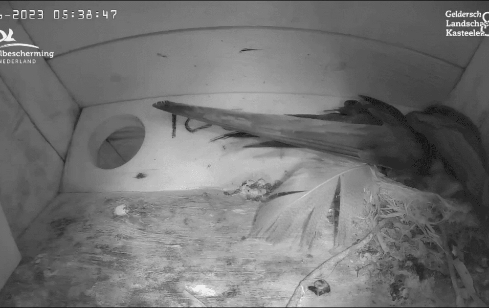 De gierzwaluwenfamilie brengt nog steeds samen de nacht door op het nest. Maar het wordt voor de ouders steeds moeilijker om er bovenop te blijven; hun onttroning staat voor de deur.