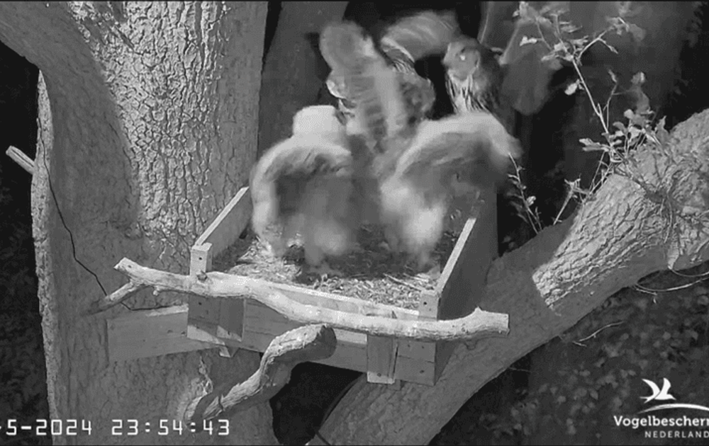 V brengt rond 4:20u een vogel. Die valt niet echt in de smaak, er worden slechts enkele hapjes van genomen. V brengt die vogel even later weg.