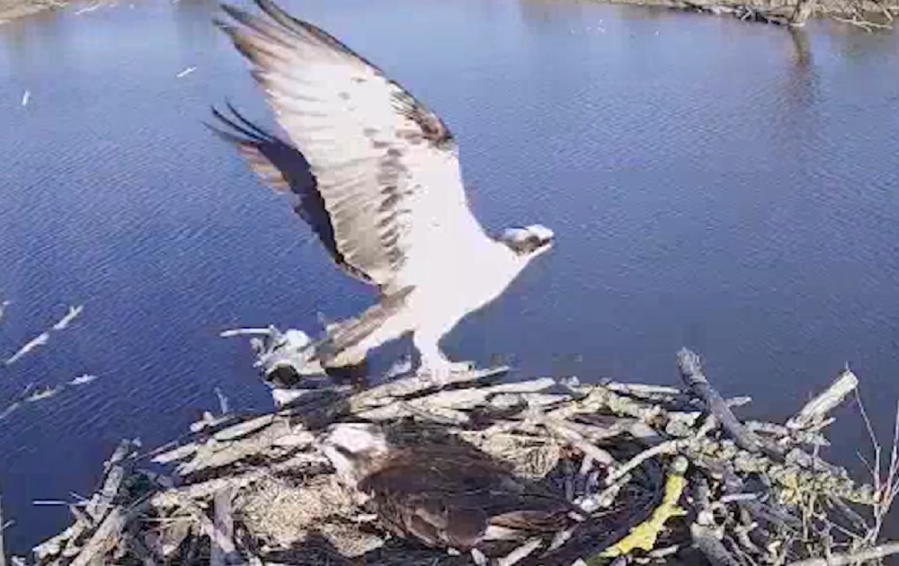 Man visarend vangt een prooi op video! De duikvlucht is goed te zien en er hangt duidelijk gewicht aan zijn klauwen. Een succesvolle jacht.