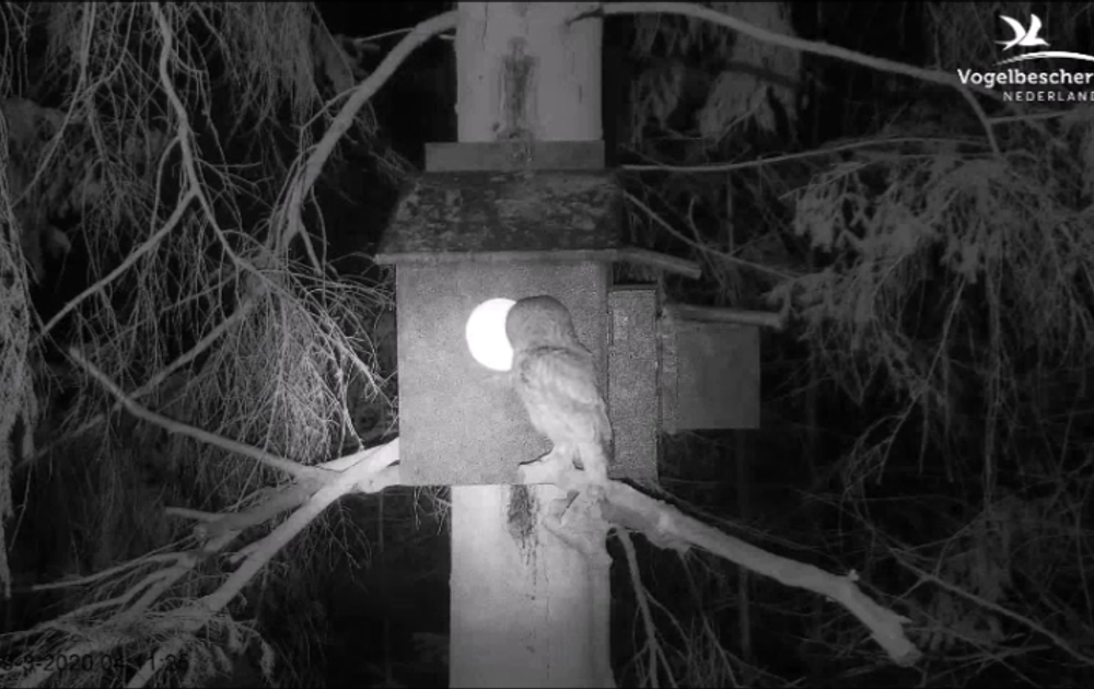 Wat was dat vannacht? Een vreemde uil bij de kast. Mogelijk een vrouwtje op zoek naar een plek om te nestelen? Je weet het nooit zeker allemaal, maar het was een fascinerend iets om te zien; het 'bezoek' duurde rond 20 minuten.