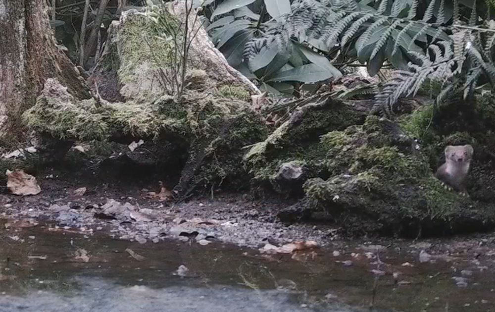 Een wezel brengt een bezoek aan de vijver, we wisten dat hij in de buurt was, maar nu dan ook in de clip.