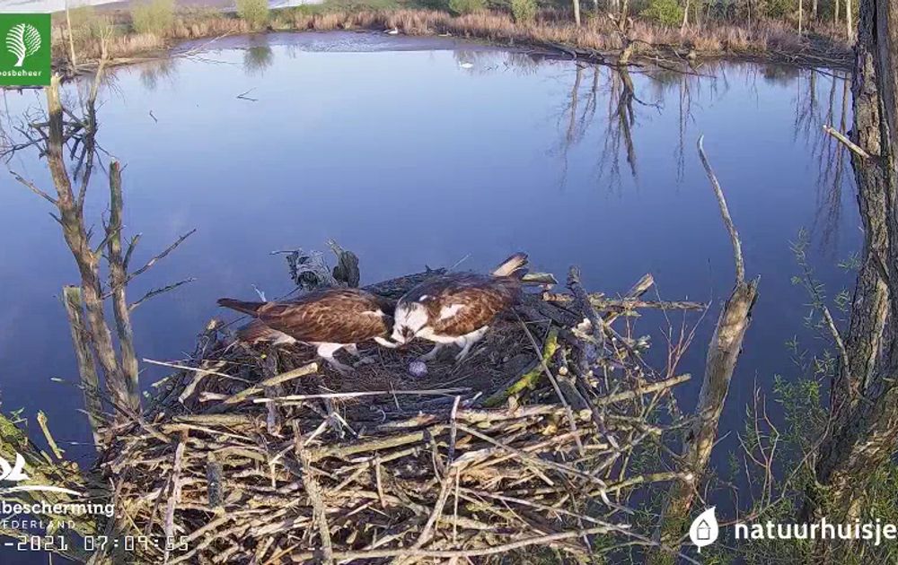 Vanochtend is het eerste ei gelegd. En om het nog mooier te maken hebben zowel vrouw als man al gebroed.