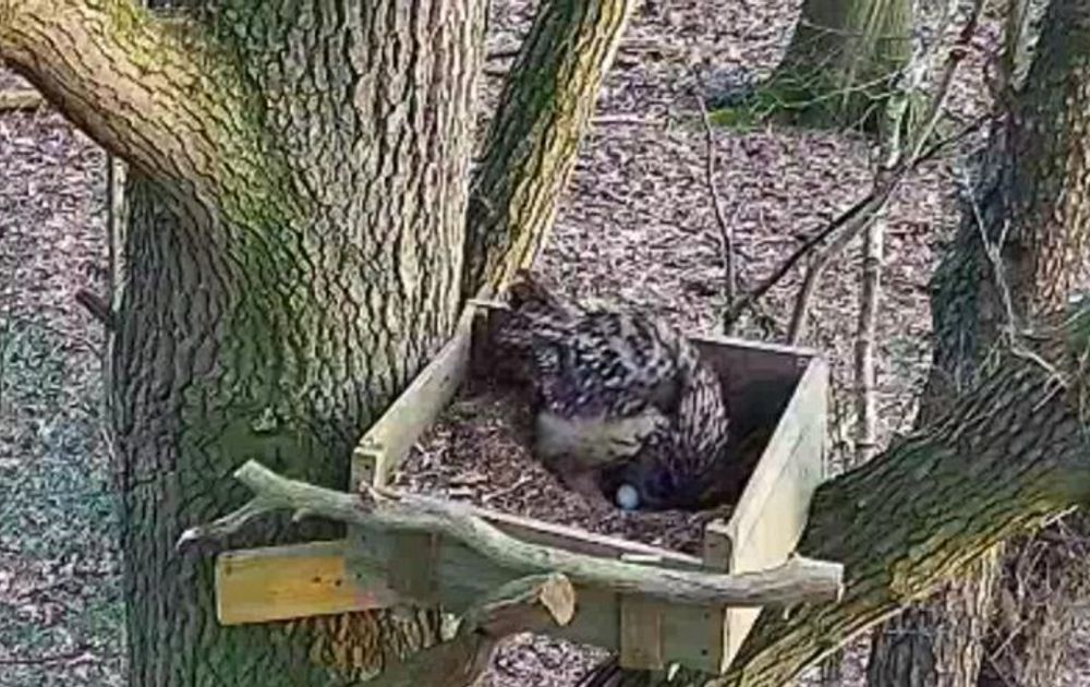 Vanmorgen vroeg heeft vrouw Oehoe, om 05:05 uur haar eerste ei gelegd!