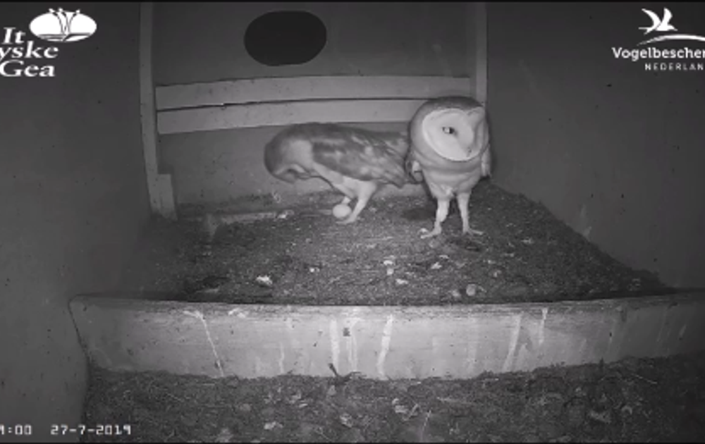 Vanmorgen om 11:46:55 exact legde vrouw kerkuil haar 10de ei van dit broedseizoen. De 2 van de eerste leg verdwenen in de maag van een steenmarter. Van leg 2 kwamen er 7 kuikens uit, maar er vlogen 5 gezond uit. En nu dus het derde legsel