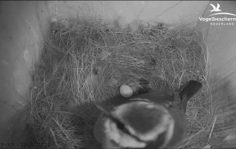 Eerste eitje door vrouw Pimpelmees gelegd om 06:20:30 uur.