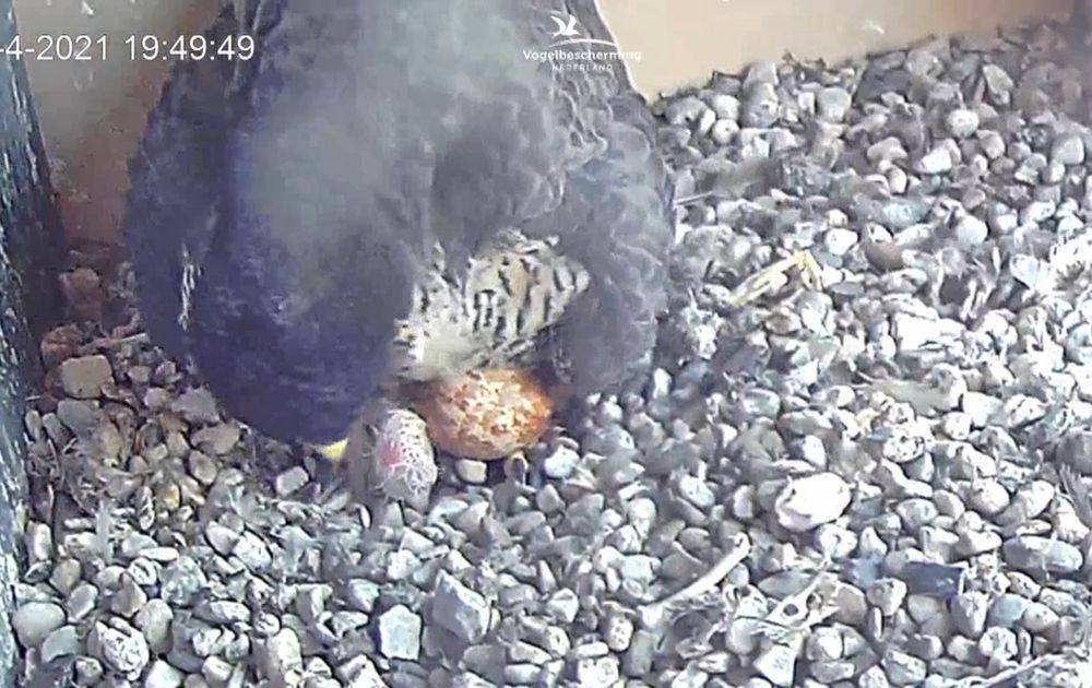 Man kwam een paar keer kijken zelfs met een prooi, maar vrouw bleef liggen.