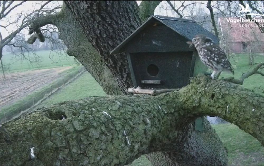 Man steenuil heeft de eerste meikever (MK in de wandeling) gevangen. Na hard roepen komt vrouw aangesneld om te genieten van deze seizoenspecialiteit voor steenuilen.