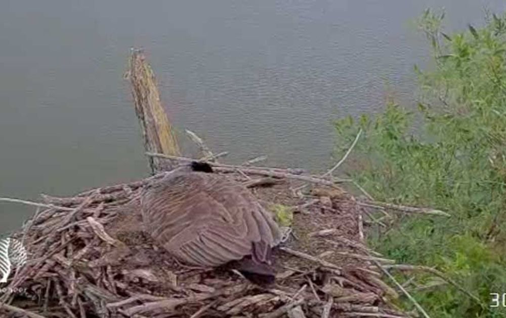 Aan het eind van de middag kon je wat beweging zien onder de staartveren. En even na achten vanavond, zagen we het 'koppie' uitsteken.