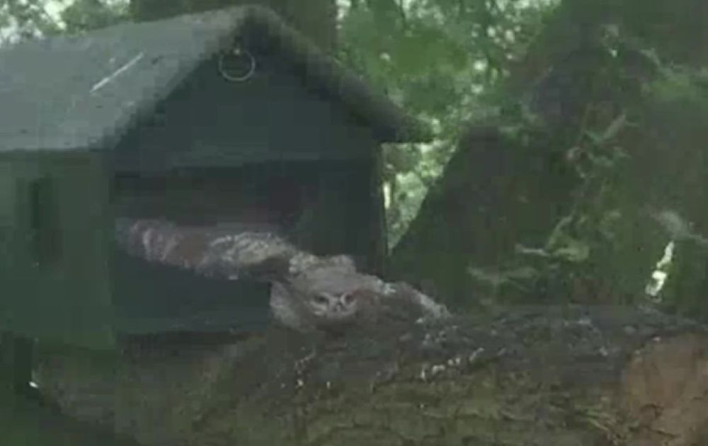 Sommige dingen hoeft een jonge steenuil niet te leren. Bij de eerste regen die het jonge steenuiltje meemaakt, kruipt het onder de douche.
