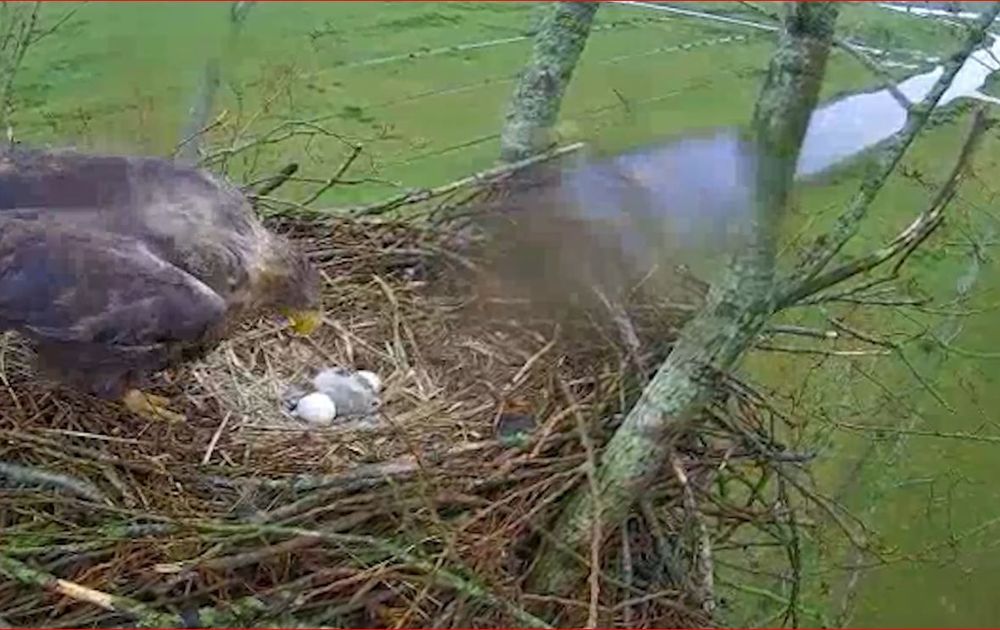 In de stormachtige nacht van 11 naar 12 april 2023 is het eerste Zeearendkuiken uit het ei gekropen.