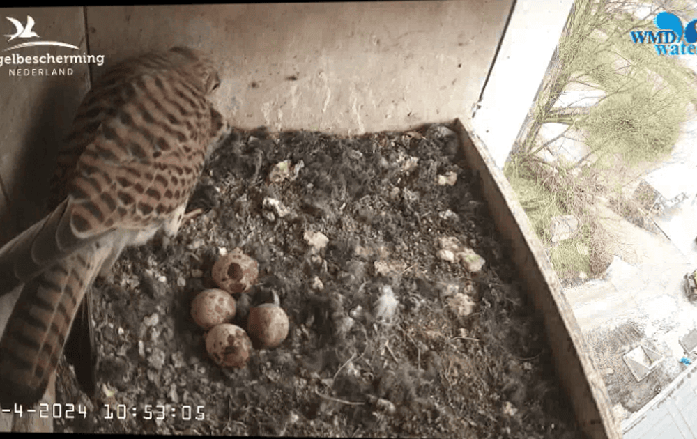 Mooi, zoals verwacht ei nummer vier. Als man torenvalk een prooi brengt voor 't eerst te zien.