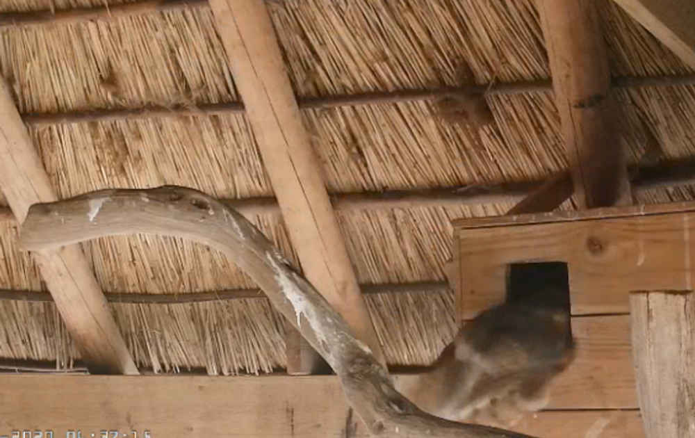 Een nachtelijke paring en één van de uilen komt met daglicht thuis.
