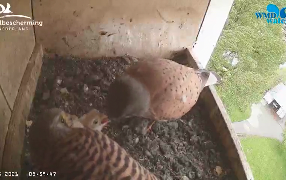 Vanochtend kwam man ook even helpen met het voederen van de drie kuikens.