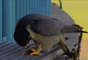Want hoe pak je een aangeboden prooi als je al een muis in je snavel hebt. Het duurt even, maar dan komt wel een oplossing. En nee... vrouw 'valt man niet aan' of probeert 'm niet weg te jagen.