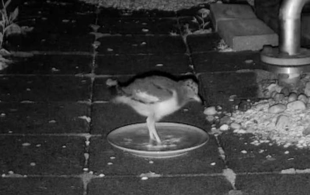 Overdag zien we onze kuuk weinig. Pas kort voor de overgang naar de nachtmodus (IR) komen ze weer voor de camera. Gedurende de nacht verblijven ze dan in het zicht van de camera, om rond de overgang naar dagmodus weer uit beeld te verdwijnen.