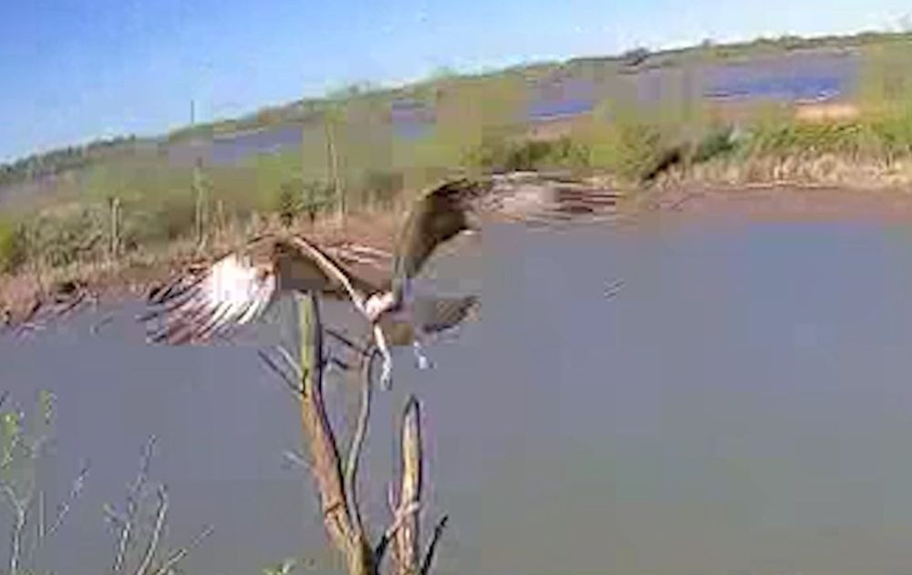 Nadat die omstreeks 11:07 hersteld is zien we 8 minuten later onze eerste Visarend voor de camera dit seizoen. Het blijft echter bij een fly-by en geen touchdown. (al leek het er even op)