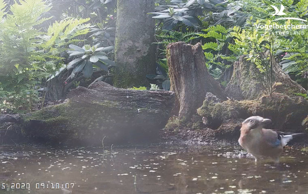 Naast een nachtelijke bezoeker o.a een staartmees en bonte spechten, een nieuwe bezoeker, een (vlaamse) Gaai