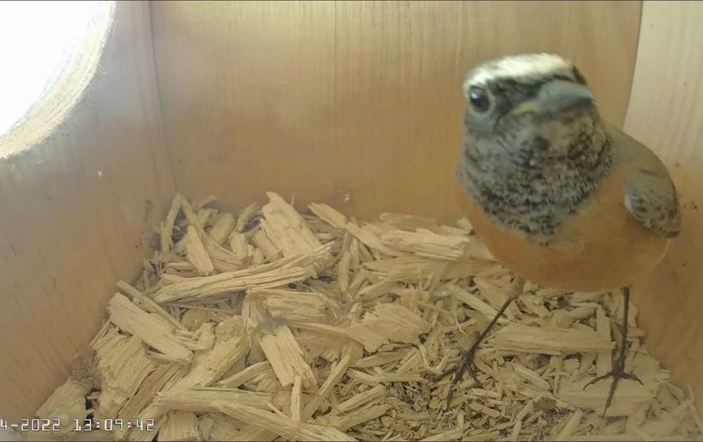 Op 22 april verscheen een man gekraagde roodstaart voor de camera in de nestkast.