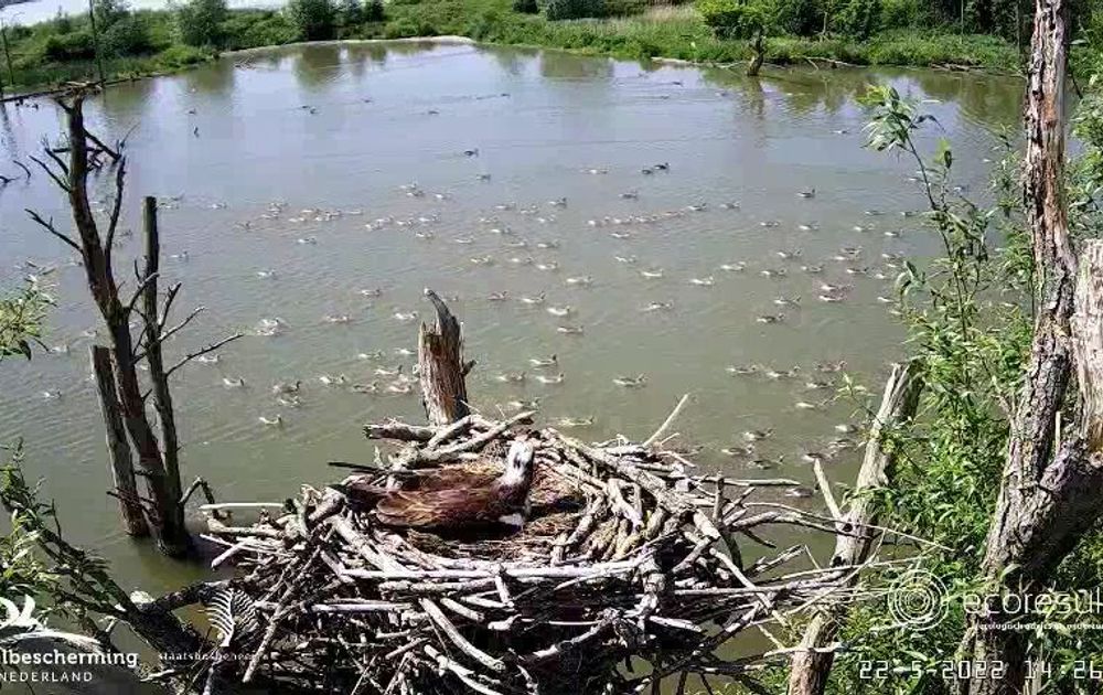 Ons paartje broedt rustig door terwijl wij kunnen genieten van de Biesboschgeluiden en dieren aan de camera voorbij trekken.