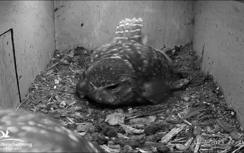 Man steenuil heeft een nest van merels ontdekt. De jonge merels staan zo ongeveer op het punt van uitvliegen. En dan komt man steenuil.....