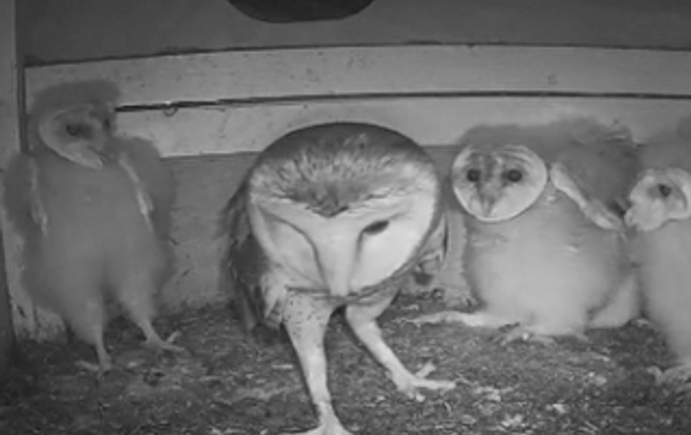 Het vrouwtje komt rond 8 uur zonder muis de kast in, de kuikens zijn zo lijkt het, in verwarring.