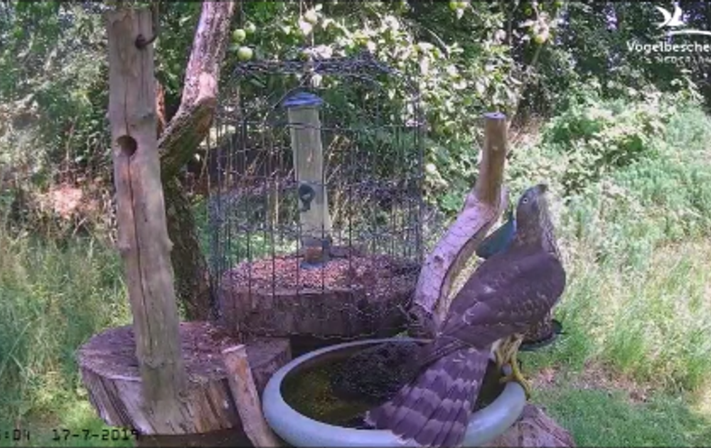 Zwarte kraaien komen voor een slokje water, maar de sperwer heeft liever een vers hapje