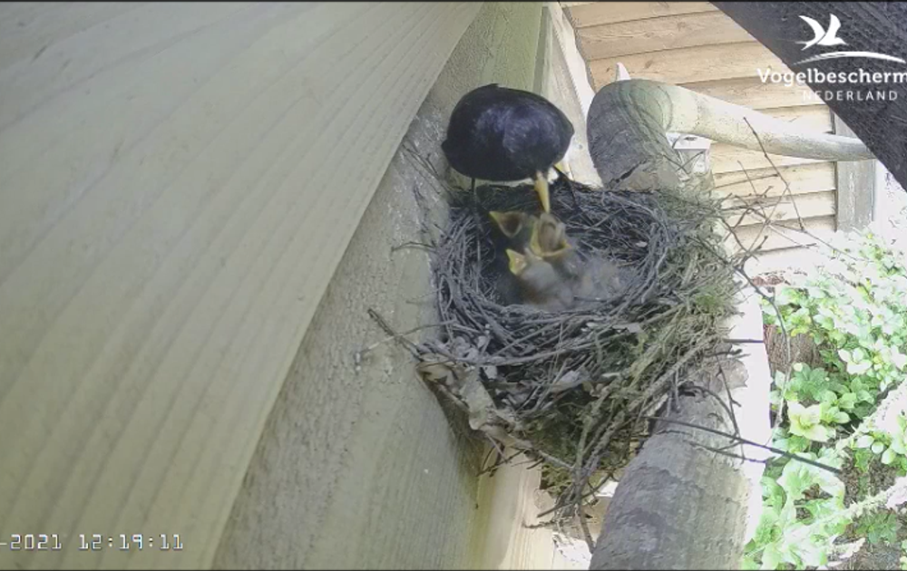 Man merel neemt een kleine worm en een mot mee voor de kuikens. De worm gaat er in als koek, maar die mot.......