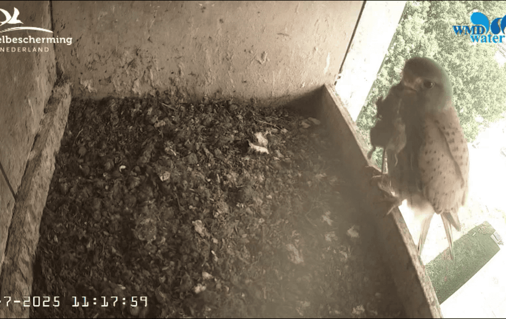 Man komt een muis brengen. Maar waar zijn de jonge valken?