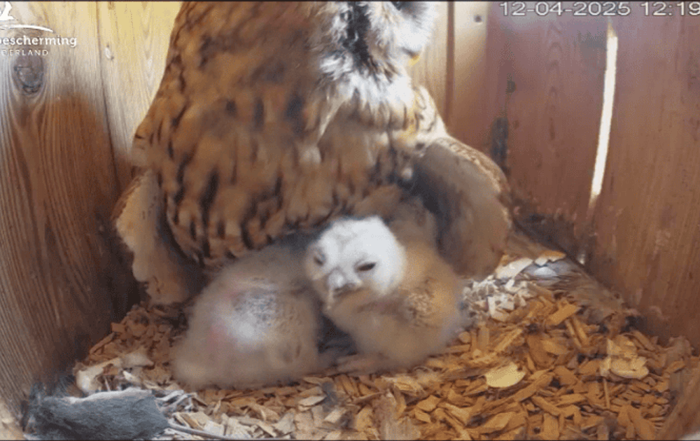 Over niet al te lange tijd past ma bosuil niet meer in de kast en zien we het grootste deel van de dag drie jonge bosuilen.