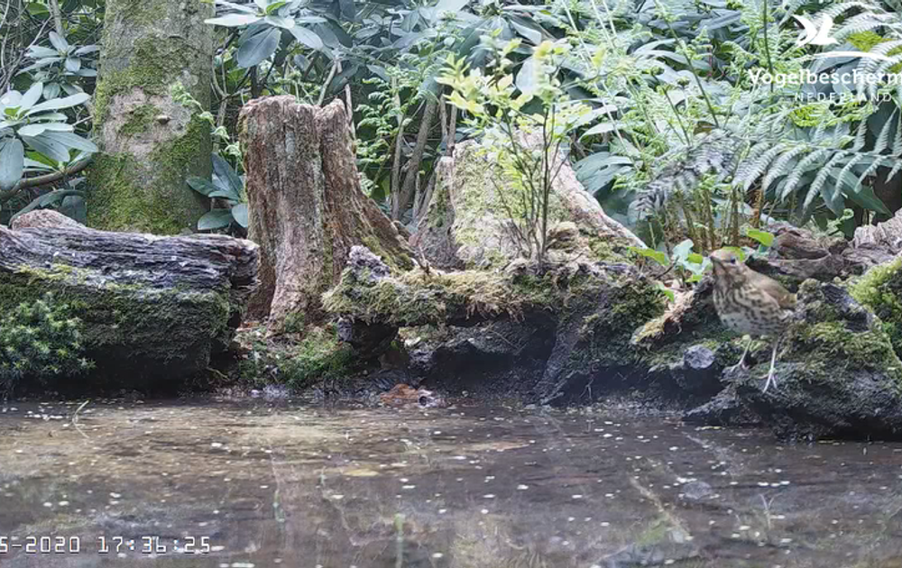 Weer veel gespetter in de vijver, met o.a roodborst, zwartkop, merel en vink.