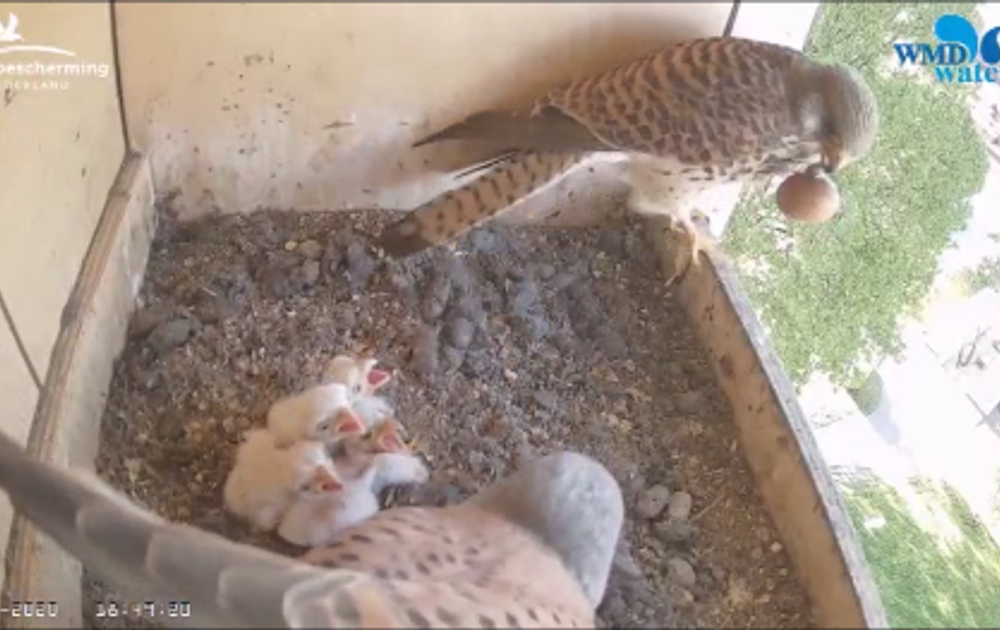 ...maar niet verloren. Het dappere kuiken heeft gisteren hard gevochten om uit het ei te komen. Helaas is dat niet gelukt. En omdat er weinig tot niets verloren gaat in de natuur heeft vrouw het kuiken opgegeten. Ondertussen zag man zijn kans schoon om de andere kuikens te voeren