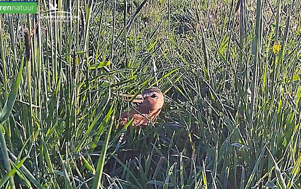Een nuttige en geliefde bezigheid. Gras buigen om de zichtbaarheid van jezelf en het nest zo klein mogelijk te maken.