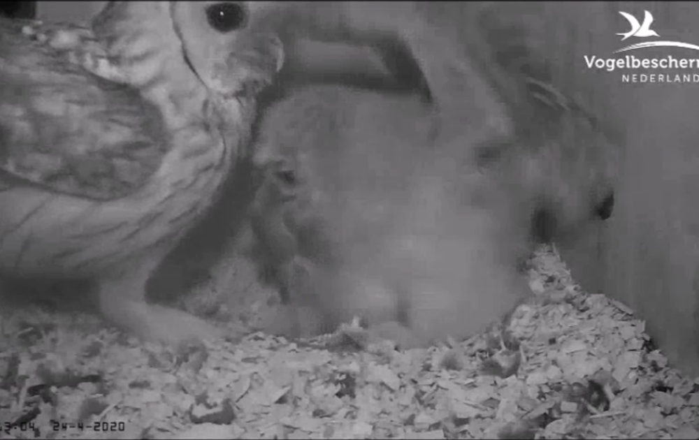 Soms is het kuiken heel actief, zo ook net nadat het donker werd.