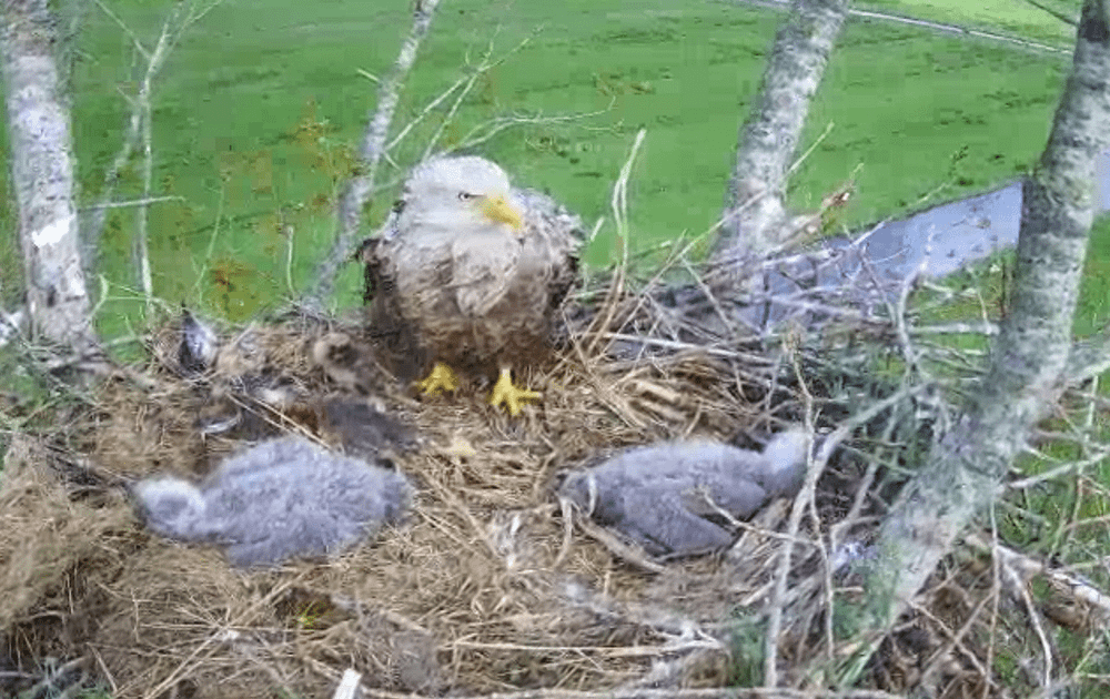 “Wat zijn ze al groot!” is een veelgehoord commentaar deze dagen. 21 en 19 dagen oud zijn ze vandaag. Er is goed te zien hoe ze, zoals Albert Eggens in zijn blog van 2 mei schrijft, aan het veranderen zijn van witte pluizebolletjes naar een donkerder, grover, wolliger kleed. Dat het formaat in twee weken ook zo enorm toeneemt is ook indrukwekkend. En kijk die klauwen!
