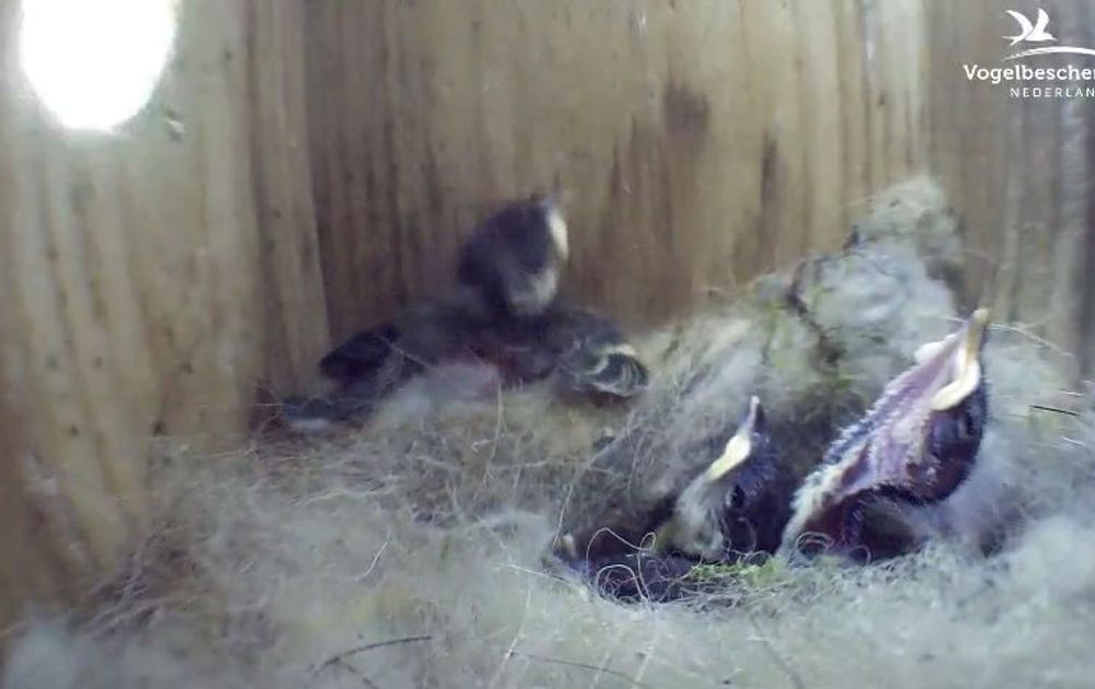 Onze kuikens worden groot en zoeken meer ruimte. Twee kuikens proberen dit uit, omdat ze wat groter zijn, kunnen ze zich makkelijker en veiliger bewegen in de nestkast.