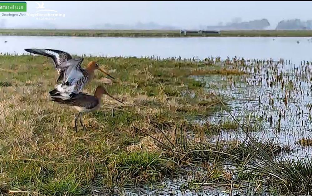 Zowel gistermiddag als vanochtend was het prachtig in beeld: paring tussen grutto's.