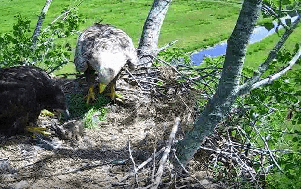 Als er gemaaid is dan verandert het dieet van onze kuikens mee. Zagen we eerst de ouders met eenden en meerkoeten op het nest komen, later kwamen er ganzen- en eendenkuikens en paling op het menu. De laatste weken werd er regelmatig ook brasem, snoek en snoekbaars gebracht zoals Jonathans laatste clip liet zien. En Merel schreef er over gisteren, 21 juni.