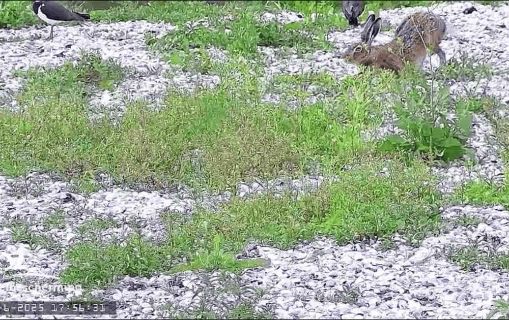 Het eet alleen helaas niet het gras tussen de camera en het nest weg, zodat wij de plevier beter kunnen zien. Maar dat vinden de pleviertjes vast niet erg.