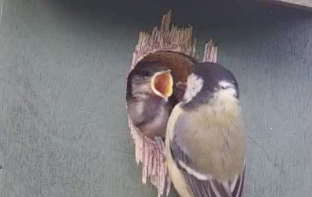 Goedemorgen! Wat is hier buiten allemaal te zien? Na bijna 3 weken in de nestkast hebben vandaag twee jonge meesjes de sprong gewaagd, niet écht een sprong omdat ze nog niet zijn uitgevlogen. Maar ze hebben wel veel vliegoefeningen gedaan in de kast, en ze hebben al aardig wat kijkjes buiten genomen vanaf de nestingang.
