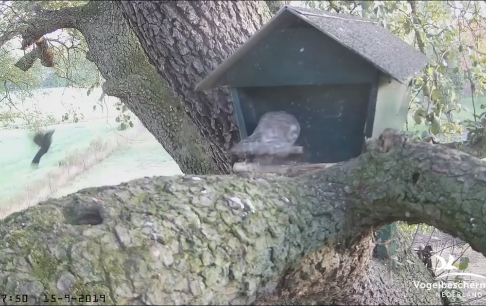 Op 15 september was vrouw steenuil in de nestkast om te poetsen/slapen om 3:14-3:16u (ongebruikelijk om deze tijd) , 7:43-10:07u en 16:18-19:54u.