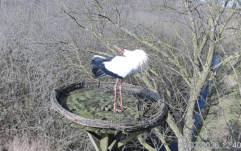 Ooievaar heel even in beeld.