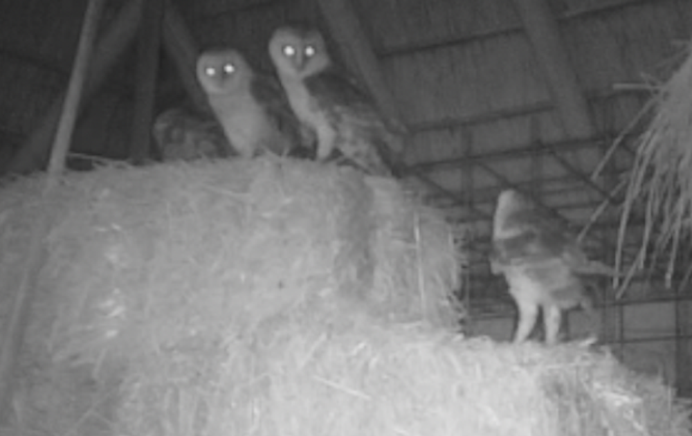 Wat was het toch weer spannend. Al een aantal dagen was K2 niet meer gezien. Allerlei scenario's zijn gedeeld en besproken. In de vorige clip Bijzondere prooioverdracht leken we al de aanwezigheid van een 4e kerkuiljong te horen, maar eindelijk zijn de 4 voor de camera's herenigd!* We kunnen opgelucht ademhalen, K2 is er nog. Hij was alleen maar even op avontuur en kennelijk bevalt het buiten slapen hem wel!