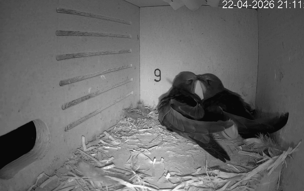 Twee gierzwaluwen zijn neergestreken in nestkast 9. Dit geeft meteen al prachtige beelden van de (tortel) giertjes