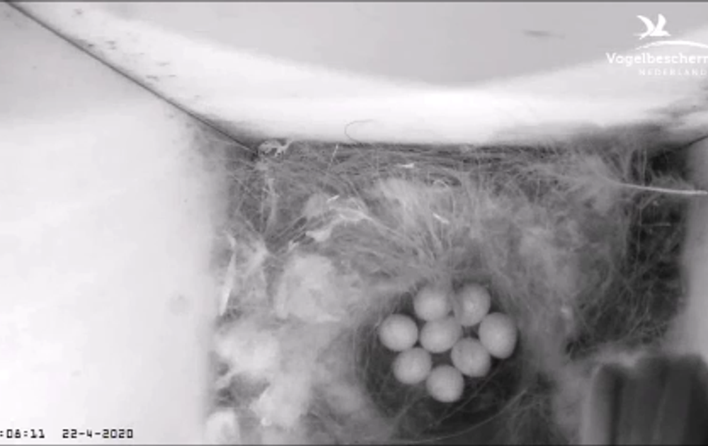 Vandaag heeft vrouw koolmees haar achtste ei gelegd, en gezien het feit dat ze meteen is gaan broeden lijkt het erop dat het legsel compleet is. Morgenochtend zullen we het echter zeker weten. Vandaag heeft ze 436 minuten (7:26u) gebroed
