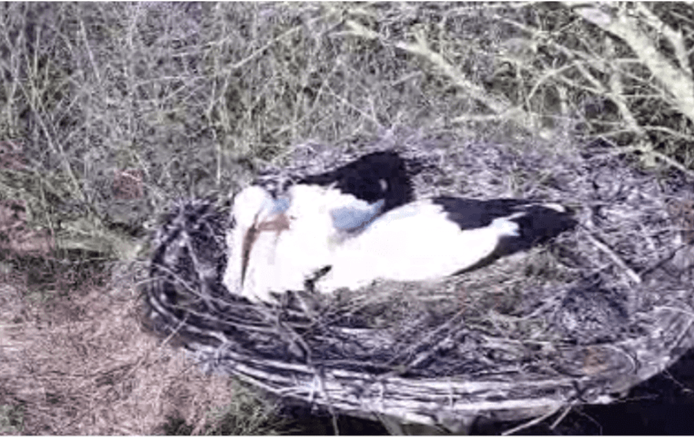 Oh, wat is Pa druk vandaag. Ma daarentegen ligt veel. En Pa blijft erg dicht in de buurt van Ma. Hij sleept veel zacht nestmateriaal naar het nest. Is er soms iets aan de hand?