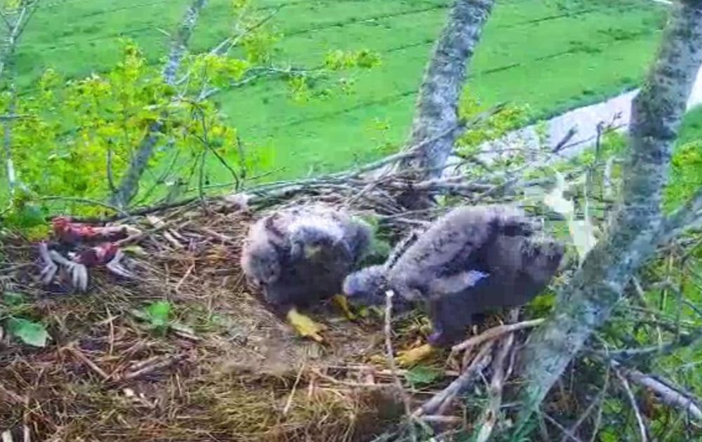 Wat groeien de zeearend kuikens hard, maar toch zijn het nog wel echt clowns met hun fratsen en gestuntel.