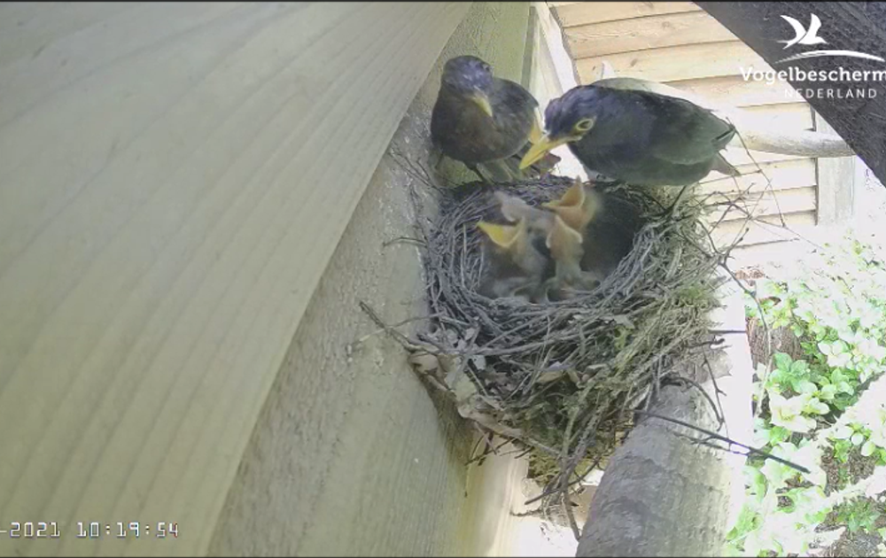 'Het gaat hard', lees je steeds vaker in de chat. En inderdaad: de goede aanvoer van kleine kruipertjes en nu gevleugeld voedsel leidt tot de snelle groei van de merelkuikens.