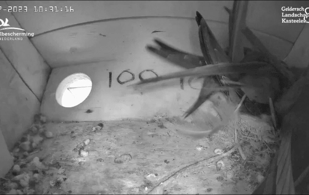 Met het stormachtige weer blijven de ouders ook meer binnen. Hoe vol het ook lijkt, is er altijd plek voor een extra gierzwaluw op het nest. En probeer ze dan eens te tellen.