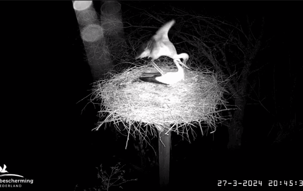 Vorig jaar werd het eerste ei in deze nacht gelegd. Heel veel mensen zijn daarom nu extra alert. Maar ons paar lijkt zich daar niet van bewust.
